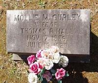 - [S806] Mary Matilda "Mollie" Gurley 1856-1929 Find A Grave, online https://www.findagrave.com/memorial/10757427/…, Find a Grave, database and images (https://www.findagrave.com : accessed 25 July 2020), memorial page for Mary Matilda “Mollie” Gurley Hall (17 Nov 1856–19 Jun 1929), Find a Grave Memorial no. 10757427, citing Gurley Cemetery, Gurley, Madison County, Alabama, USA ; Maintained by Jason Presley (contributor 46598252) .