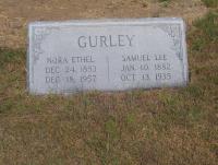 Samuel Lee Gurley was born on 10 January 1882 at Howe, Grayson County, Texas.1 He married Nora Ethel Barron on 15 September 1901 at Grayson County, Texas.1 Samuel Lee Gurley died on 13 October 1935 at McKinney, Collin County, Texas, at age 53.2 He was buried after 13 October 1935 at Hall Cemetery, Howe, Grayson County, Texas.3